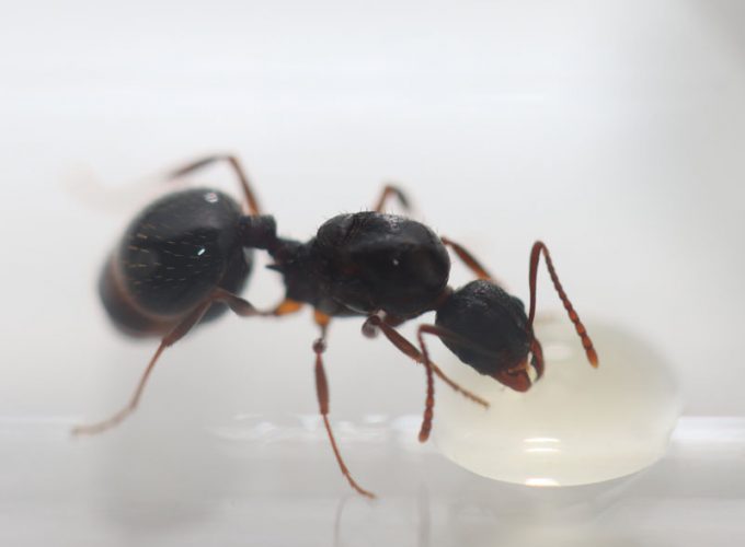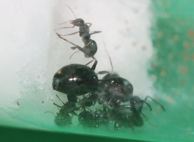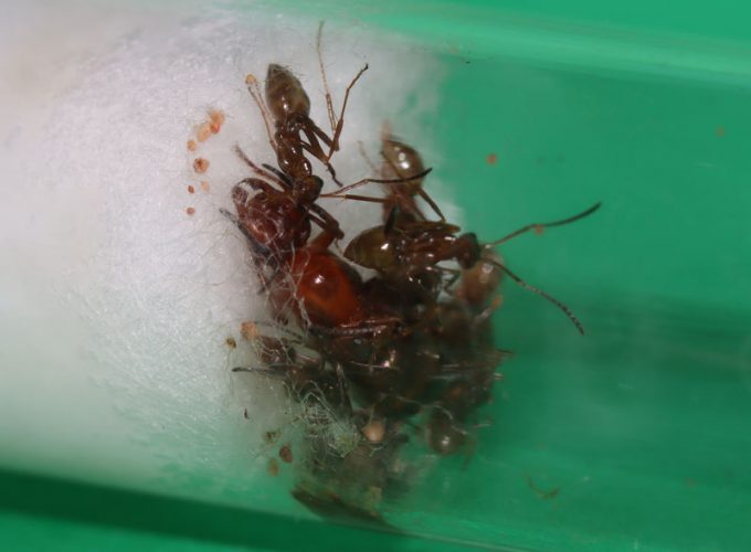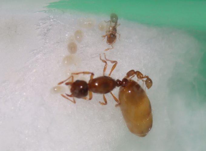 This is the same Crematogaster ant from last week, but now she has brood! In …