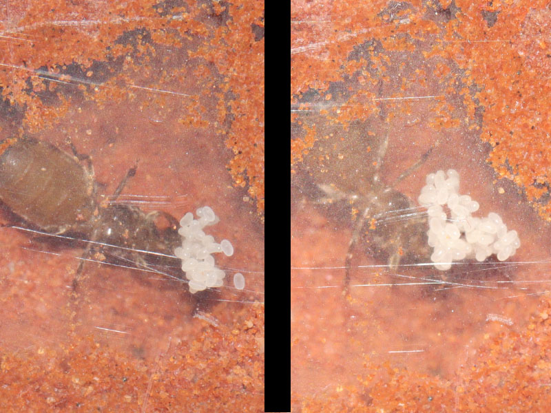 Woah! In just a few days, the Lasius queen’s brood pile has become even larger than last week! The brood pile from Wednesday is on the right and is noticeably larger than last week’s brood. This means she is still laying eggs, which is good.