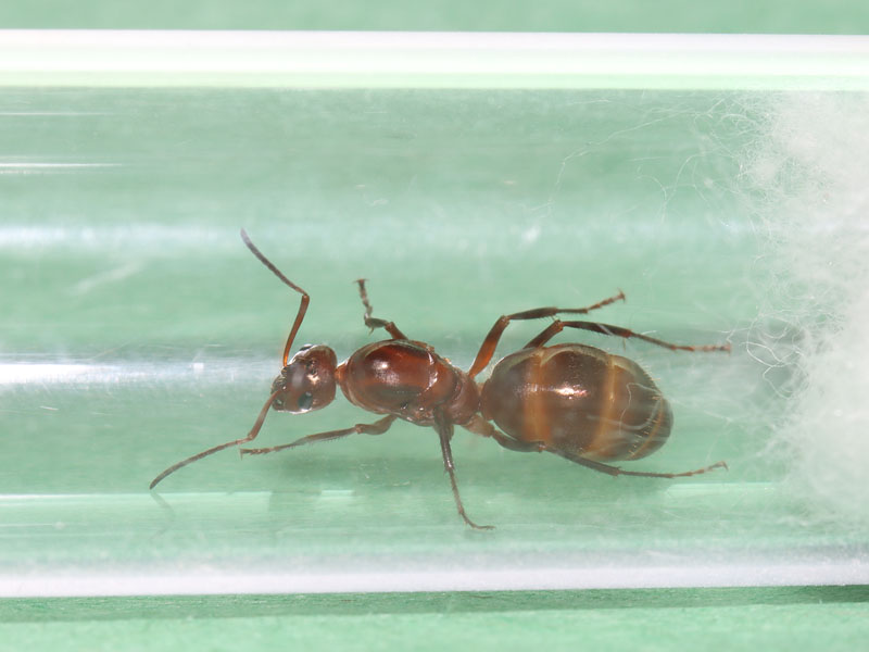 The next day, at some point in the morning, my mom told me that she had caught an ant under a plastic cup in our driveway. So I came over with a test tube and sure enough, under the cup was a queen ant! I managed to catch that queen as well and here she is.