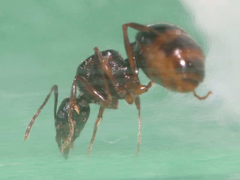 This is my new Tetramorium queen ant. I really wanted a Tetramorium for ages because they are great starter ants, but it was too late in the season for them, or so I thought. On August eleventh, I went queen hunting. Suddenly, out of the blue I saw a large gaster reflecting light, so I had a look, and I identified it as a queen ant. I caught the queen, and sure enough, it was my first Tetramorium Queen. I think it is a Tetramorium immigrans queen.